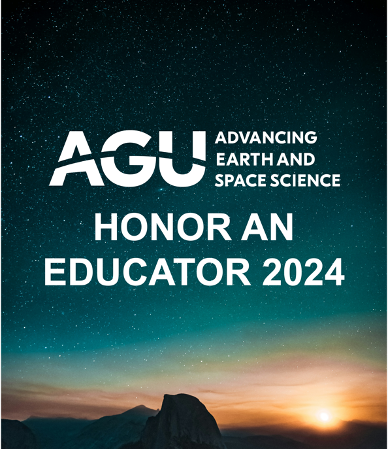 The Education Section invites you to recognize outstanding teachers and mentors that have made a difference in your life by donating to the Honor an Educator Campaign. This initiative funds professional development workshops, conference attendance, and other collaborative experiences for educators and students. Your contribution helps our Section increase opportunities to share Earth and space science with the world. Learn more and donate today!